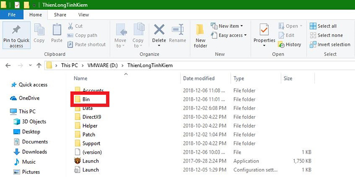 - Vào thư mục game TianLongBaBu tìm thư mục Bin