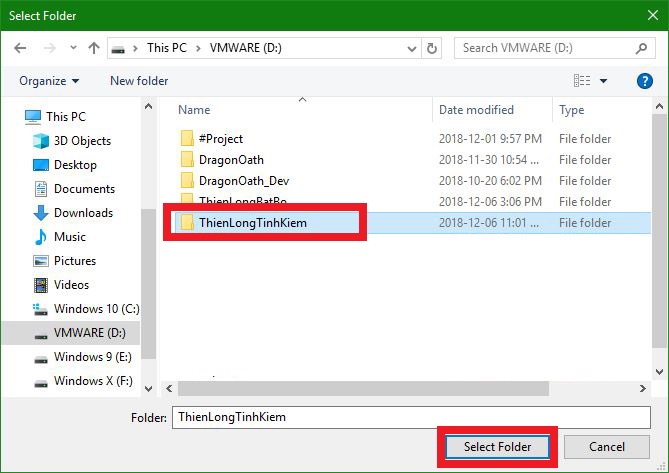 - Chọn đường dẫn đến thư mục cài game TianLongBaBu và chọn Selecte Folder